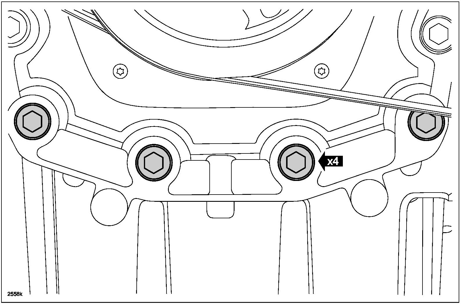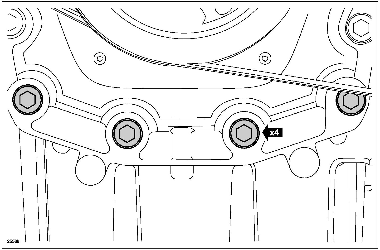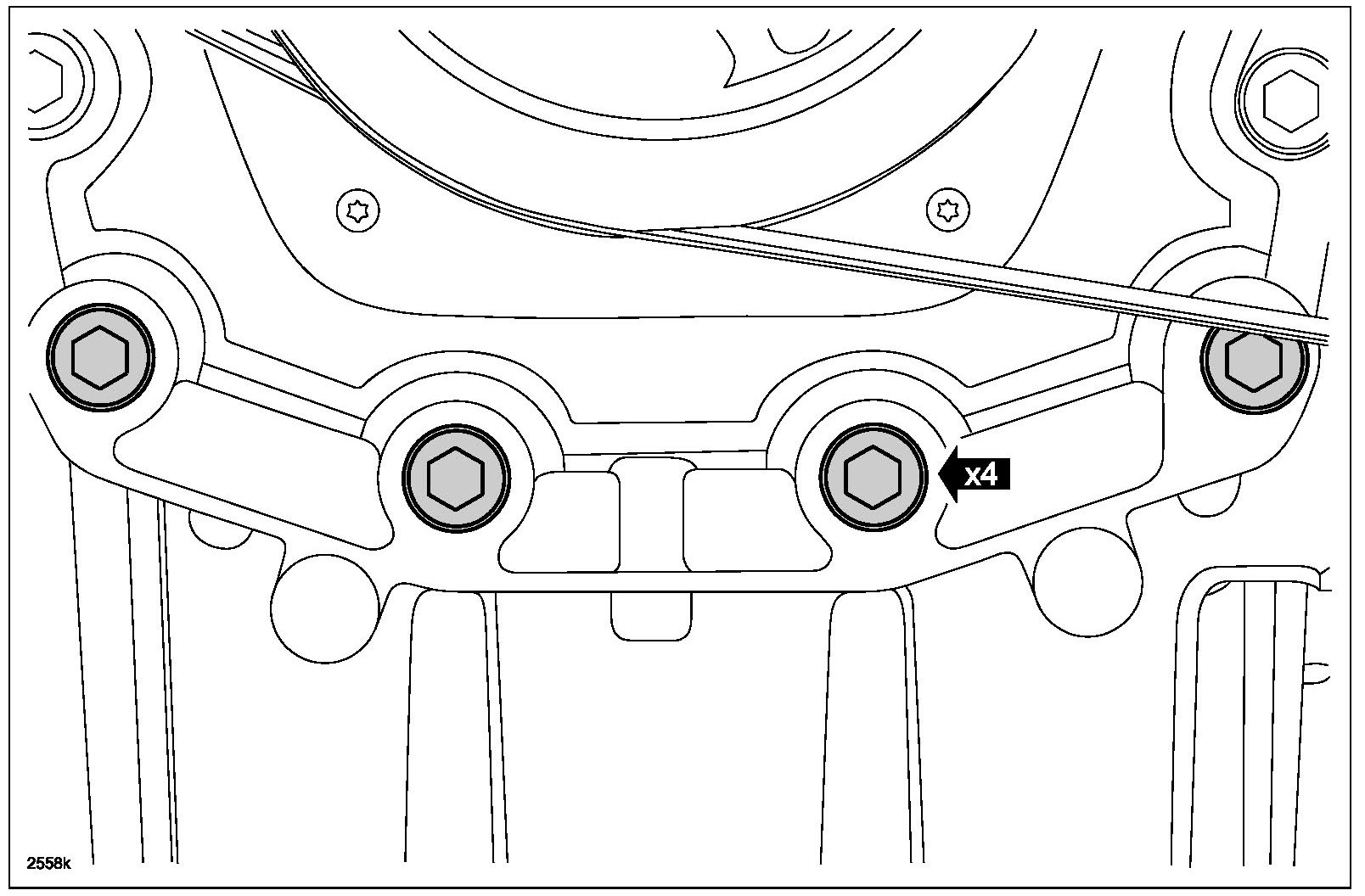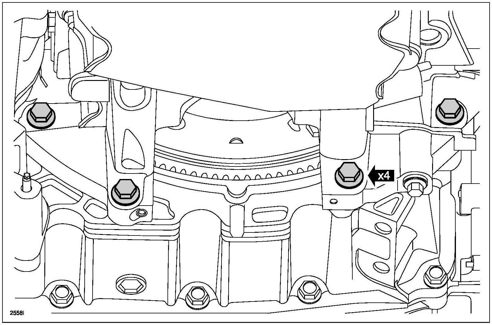 10. Tighten the 4 lower engine front cover bolts in two steps.