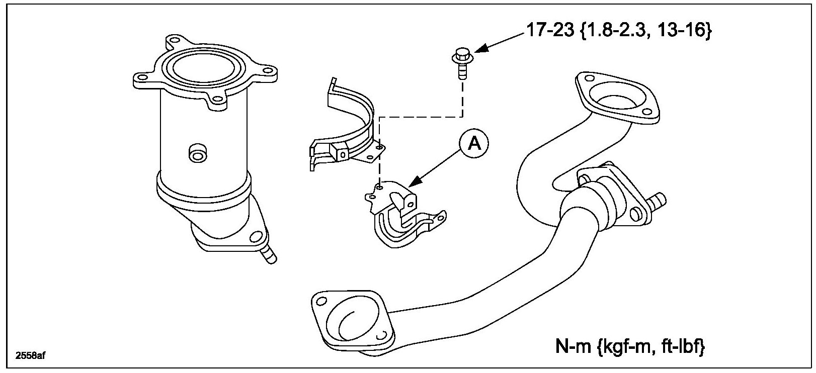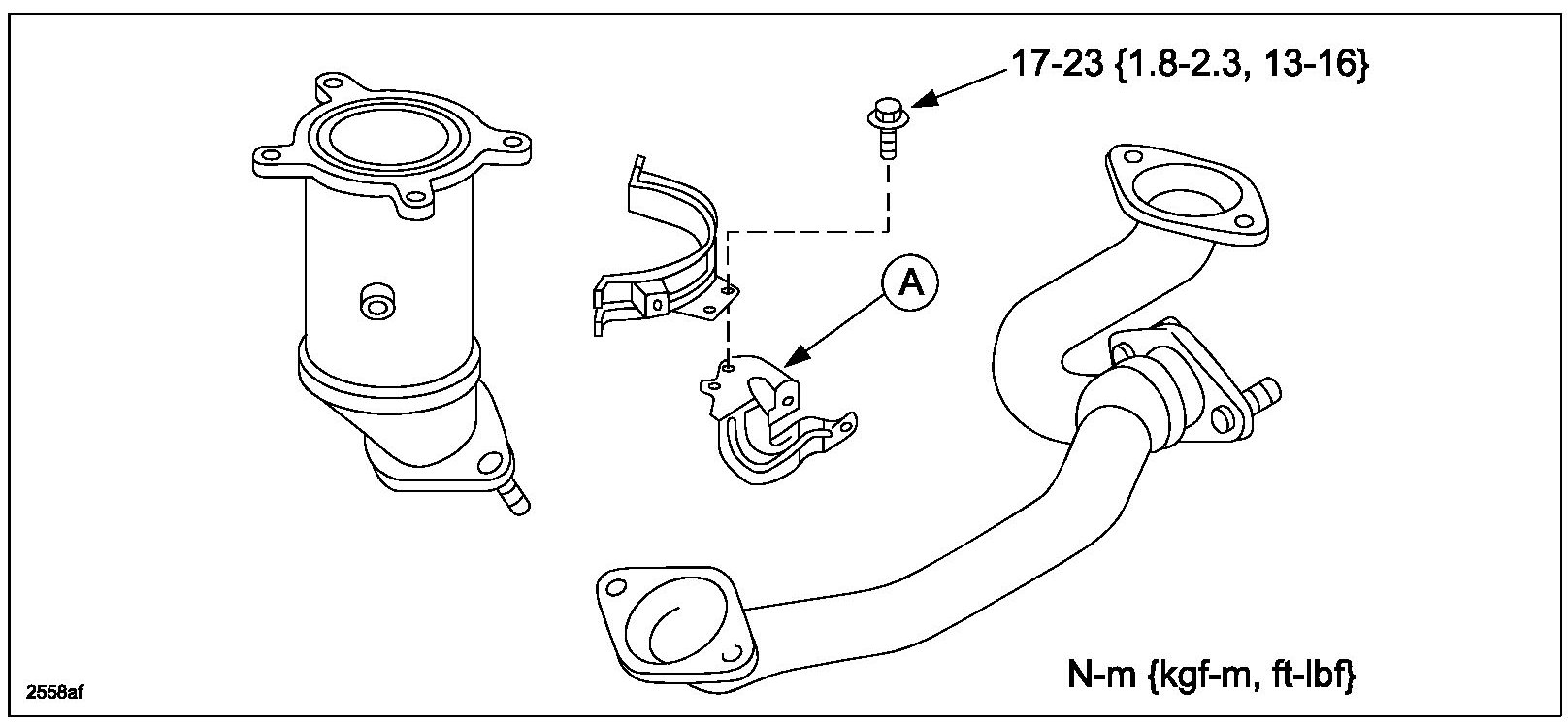 a. Install the front cooler pipe fixing bolt (A). Tighten bolt to 8-12 N-m (82-122 kgf-cm, 71-106 in-lbf)