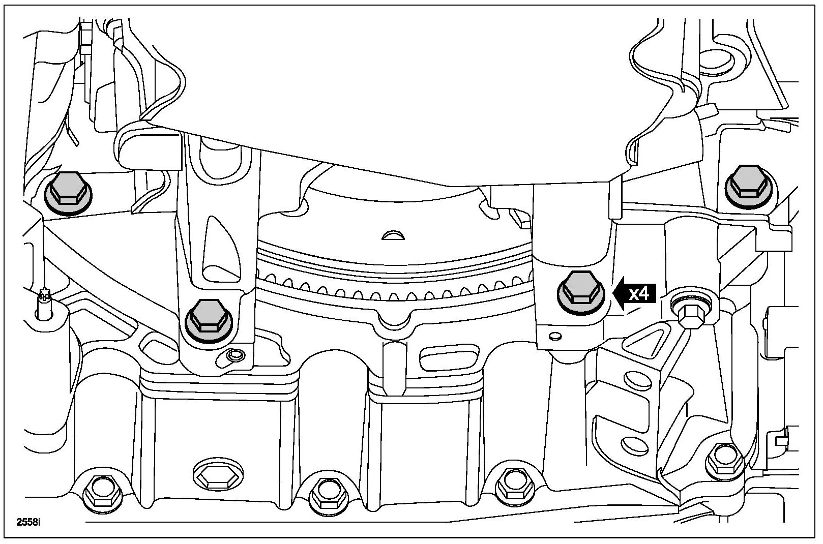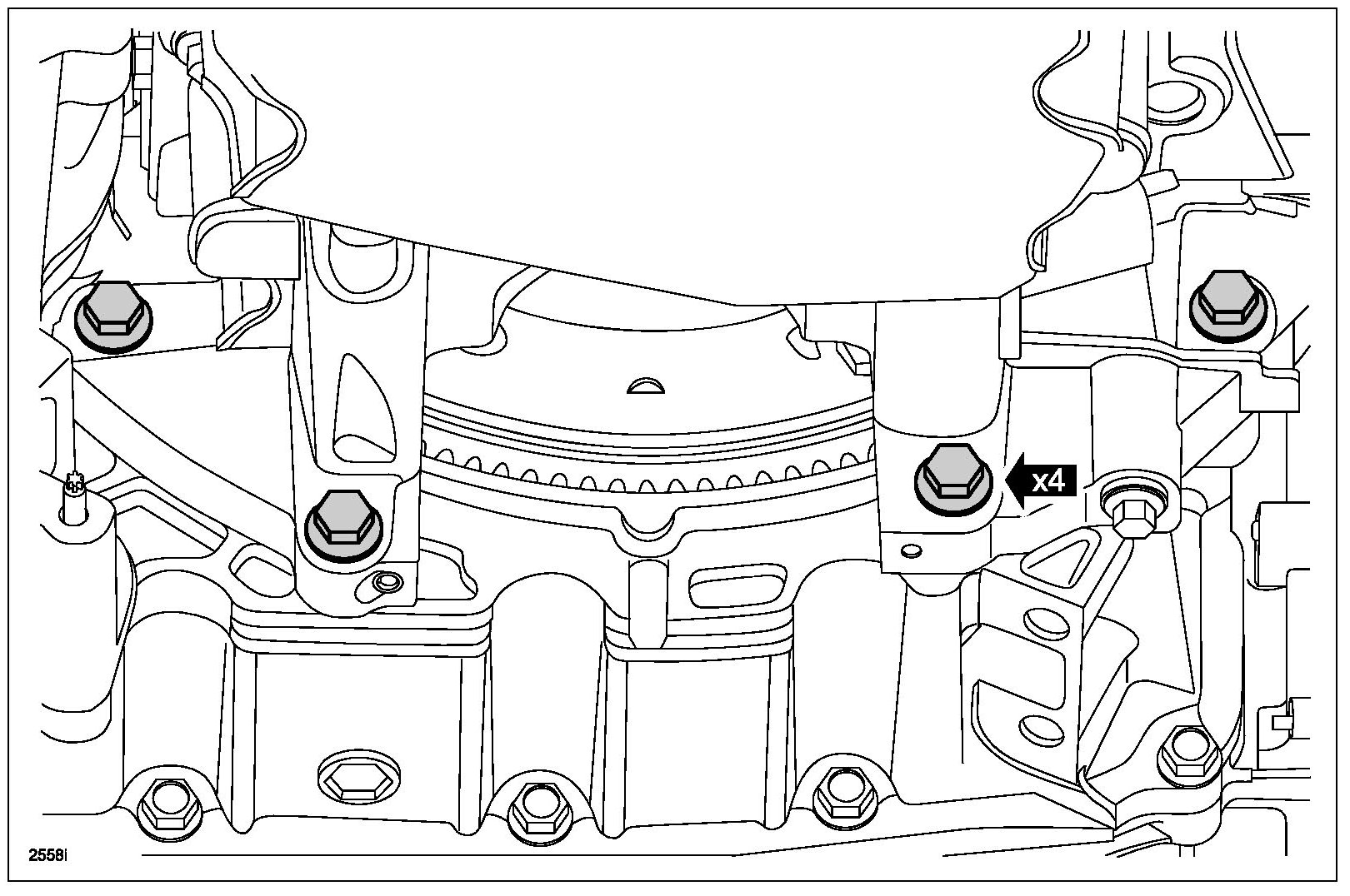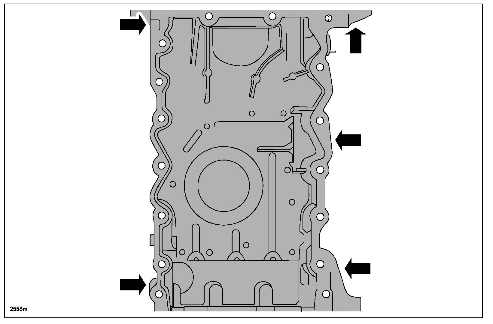 - The oil pan and the 4 specified bolts must be installed within 4 minutes of the start of sealant application.