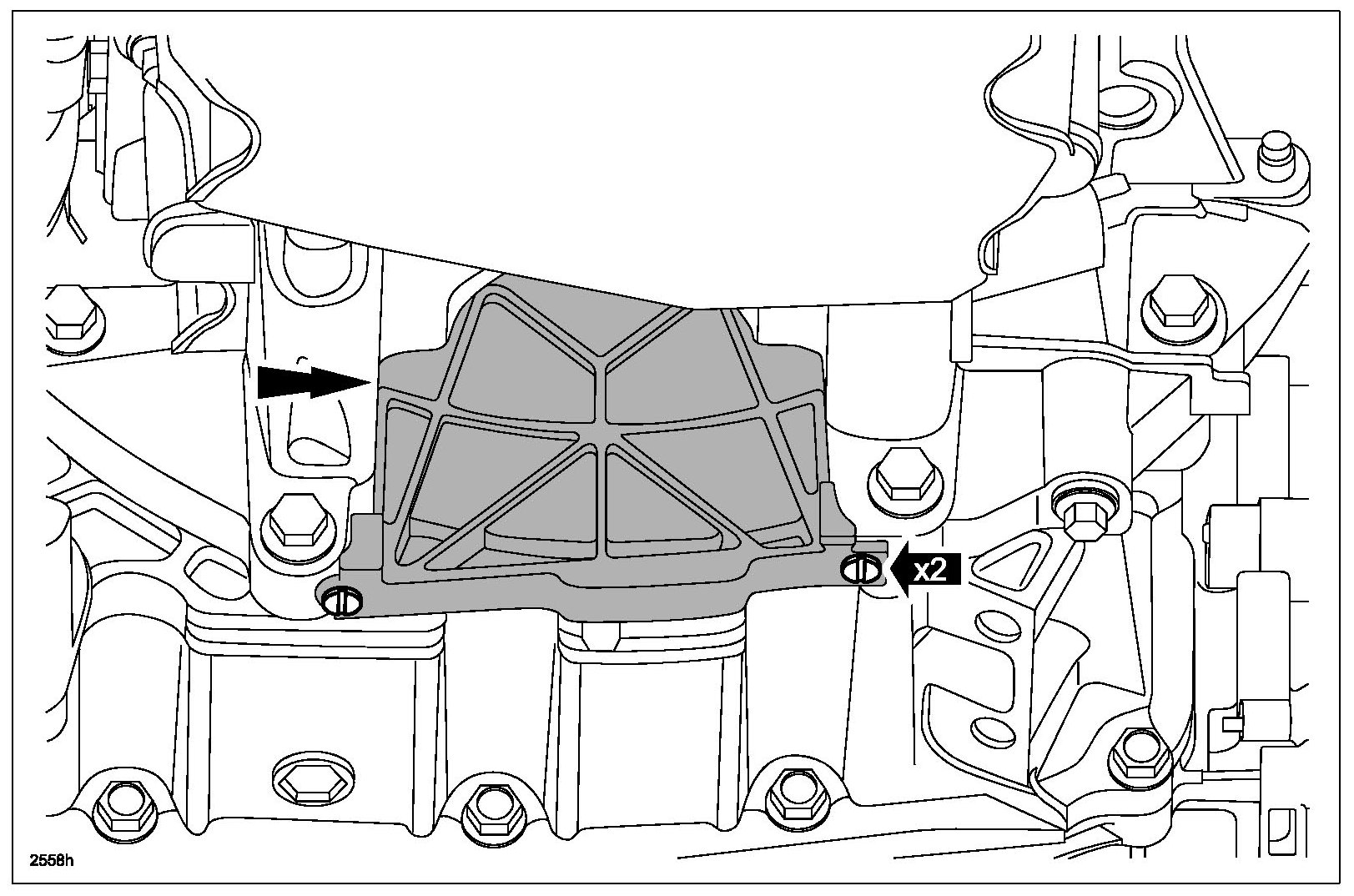 33. Remove the 2 fasteners and the inspection cover.