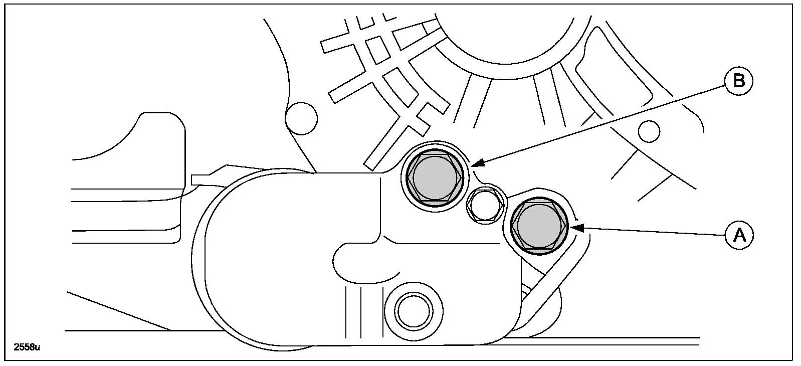 14. Remove the No.1 engine mount bracket bolts (A-B).
