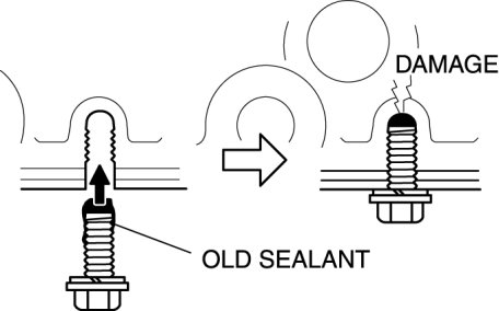 3 Using bolts with the old seal adhering could cause cracks in the cylinder block.