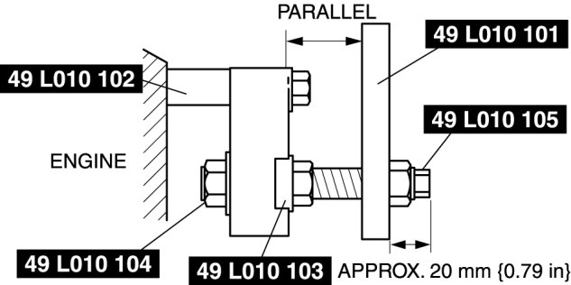 5. Adjust the SSTs (bolts) so that approx. 20 mm {0.79 in} of thread is exposed from the side of the SST (plate).