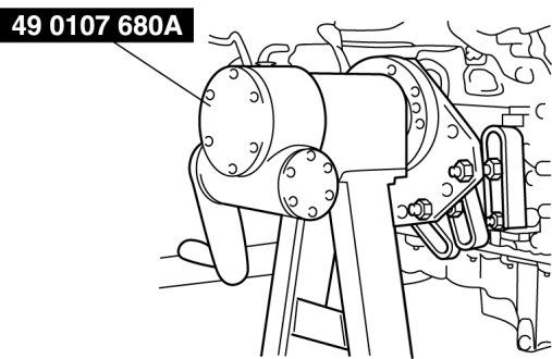 2. Alternately tighten the two bolts one turn at a time until the oil pan-to-cylinder block seal is released.
