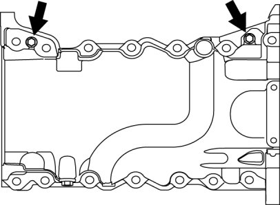 1. Install two of the oil pan bolts temporarily into the two threaded holes in the oil pan.