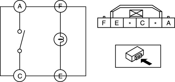 1. Verify that the continuity between the hazard warning switch terminals is as indicated in the table.