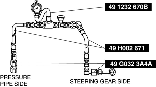 9. Turn the steering wheel fully to the left and right, then measure the fluid pressure generated at the gear housing.