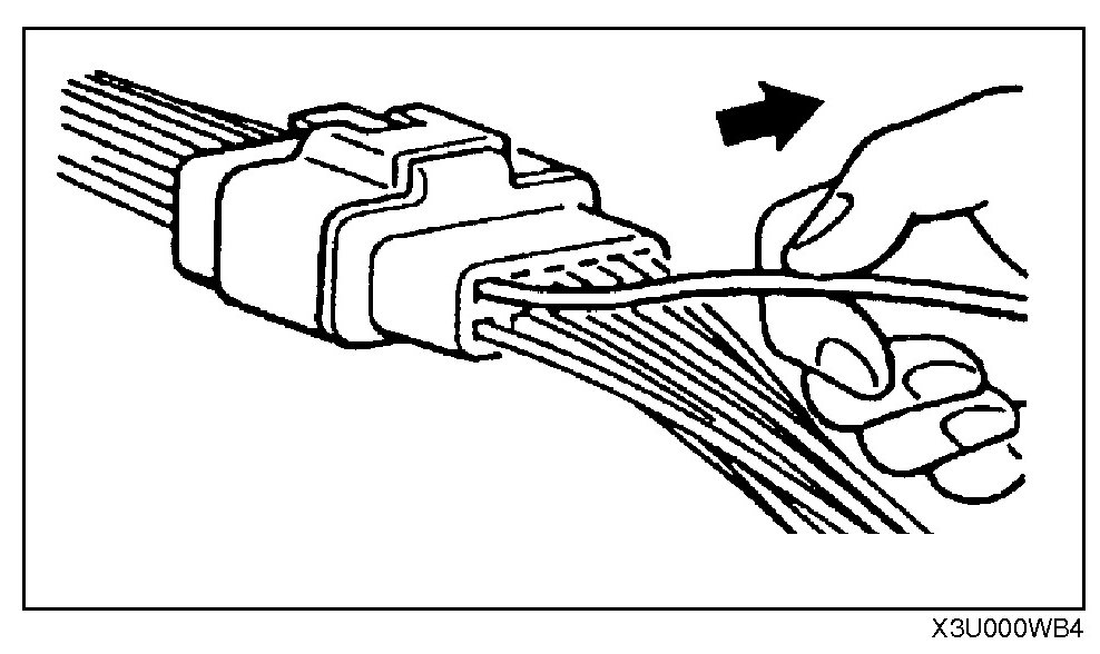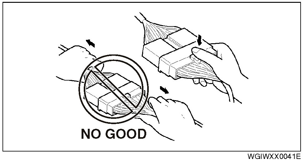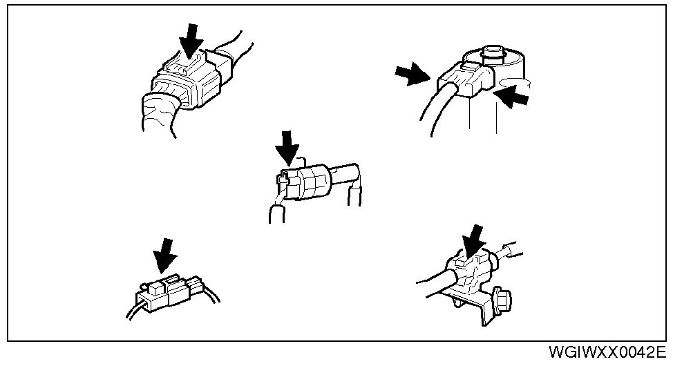 - Inspect the terminals of waterproof connectors from the connector side since they cannot be accessed from the wiring harness side.