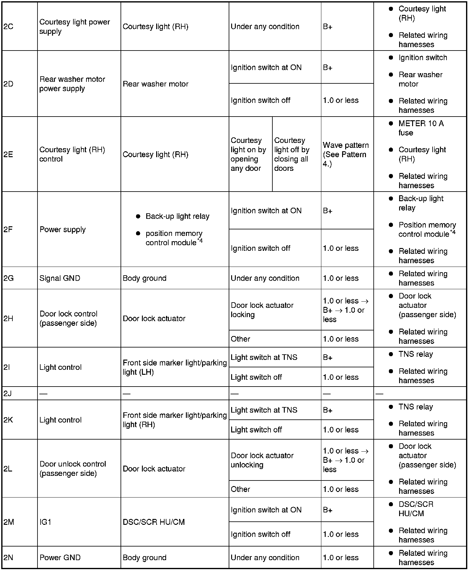 - Lock/unlock input (rear door lock-link switch (RH): 6W (+) -> body ground (-)