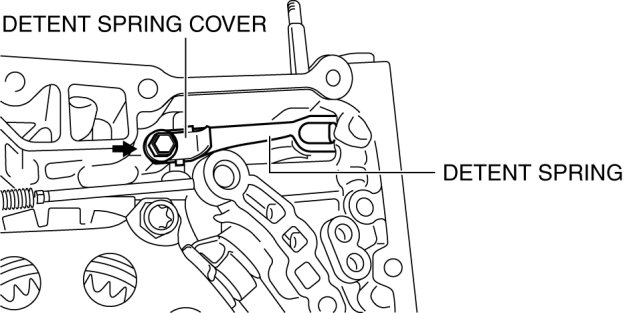 69. Install the detent spring cover and detent spring to the transaxle case.