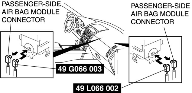 2. Disconnect the passenger-side air bag module connector.