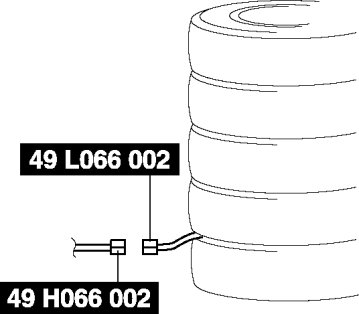 3. Put the pre-tensioner seat belt inside the tire and secure it to the tire by wrapping a wire (cross section of 1.25mm2 {0.002in2} or more) through the tire and the bolt installation holes at least 4 times.