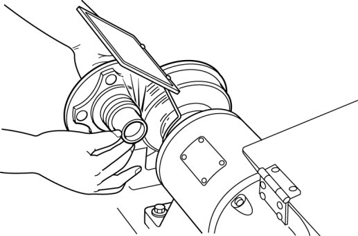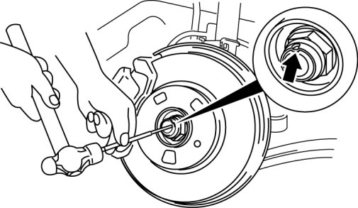 5. Tap the nut with a copper hammer to loosen the drive shaft from the front wheel hub.