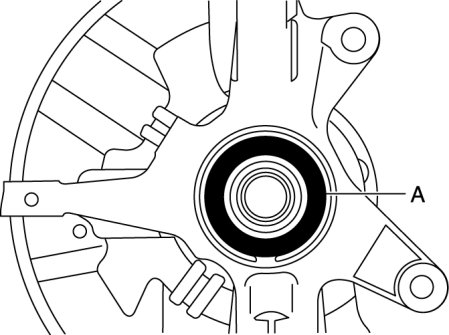 1. Apply grease (L2Y1 33247) to the wheel bearing inner race and drive shaft contact surface (Area A in figure).
