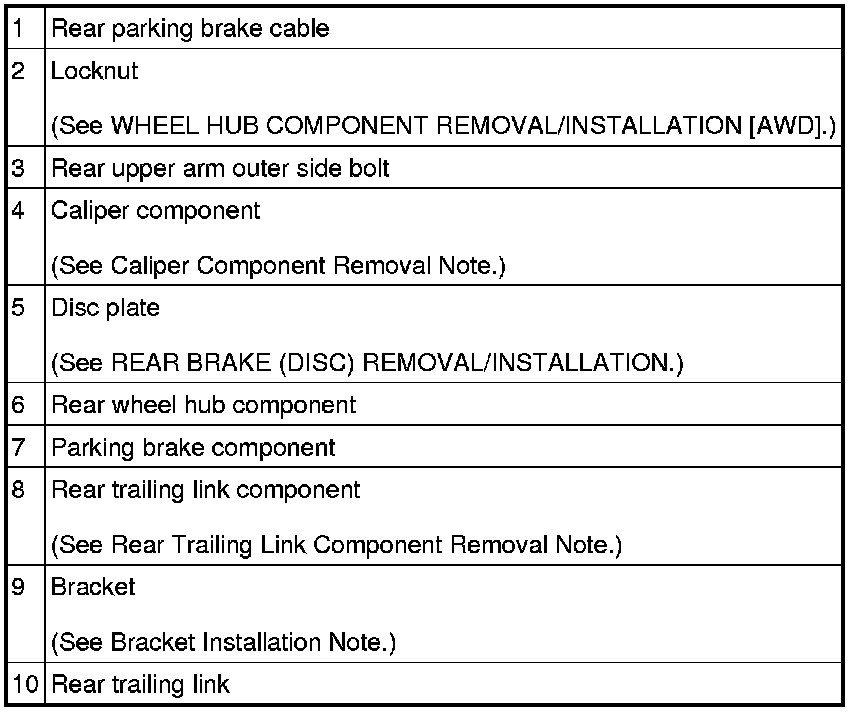 Rear Trailing Link Component Removal Note