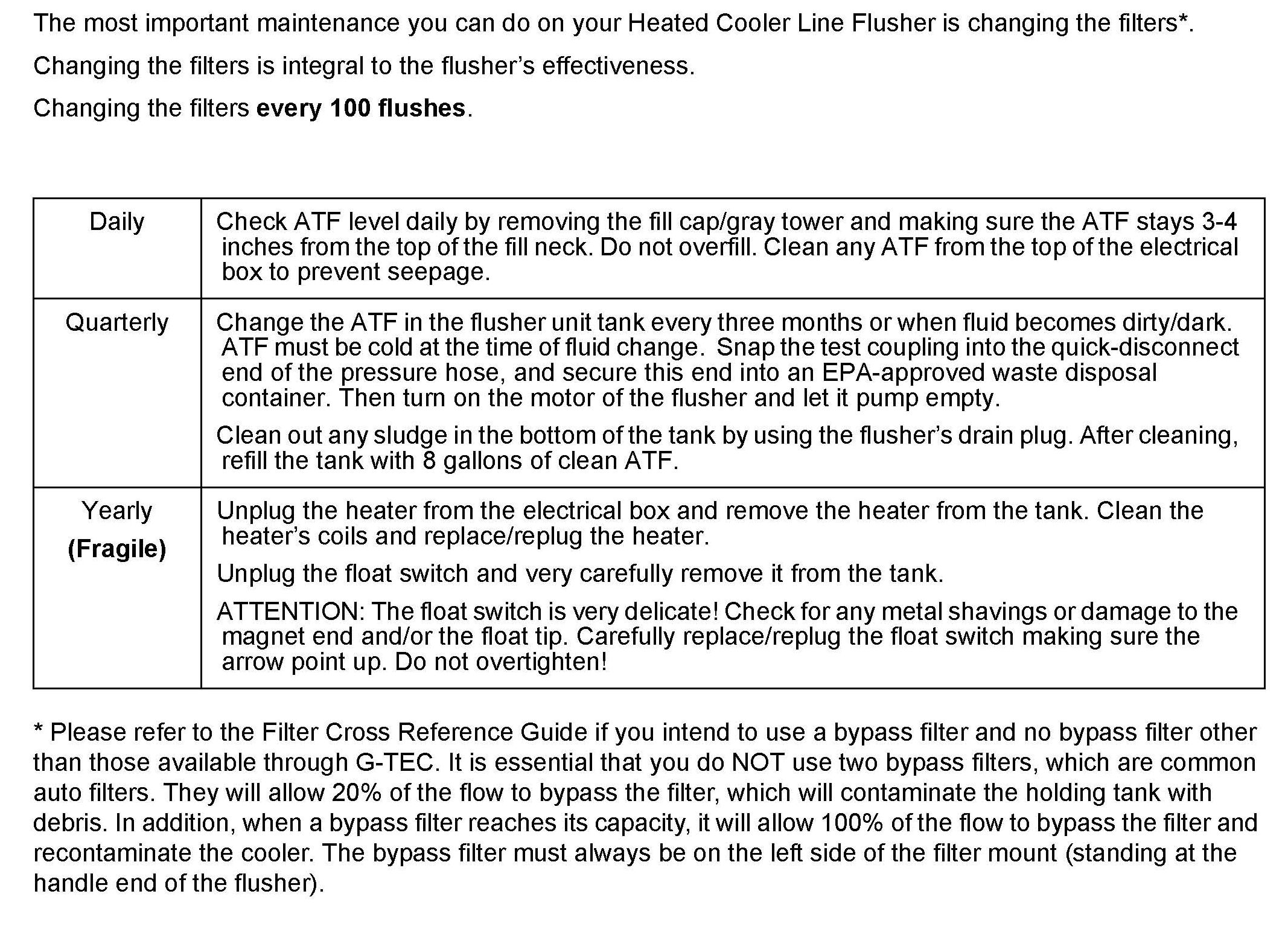 ^ Before starting or engaging the motor for flushing and purging, be certain that the ATF in the tank has reached about 120F.