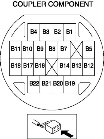 4. Measure the resistance between coupler component terminals B16 and B21.