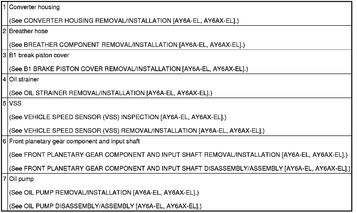 AUTOMATIC TRANSAXLE LOCATION INDEX [AY6A-EL, AY6AX-EL]
