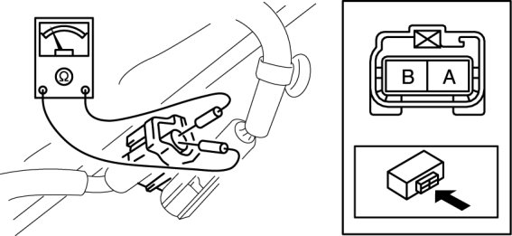 3. Measure resistance between AWD solenoid connector terminals A and B.