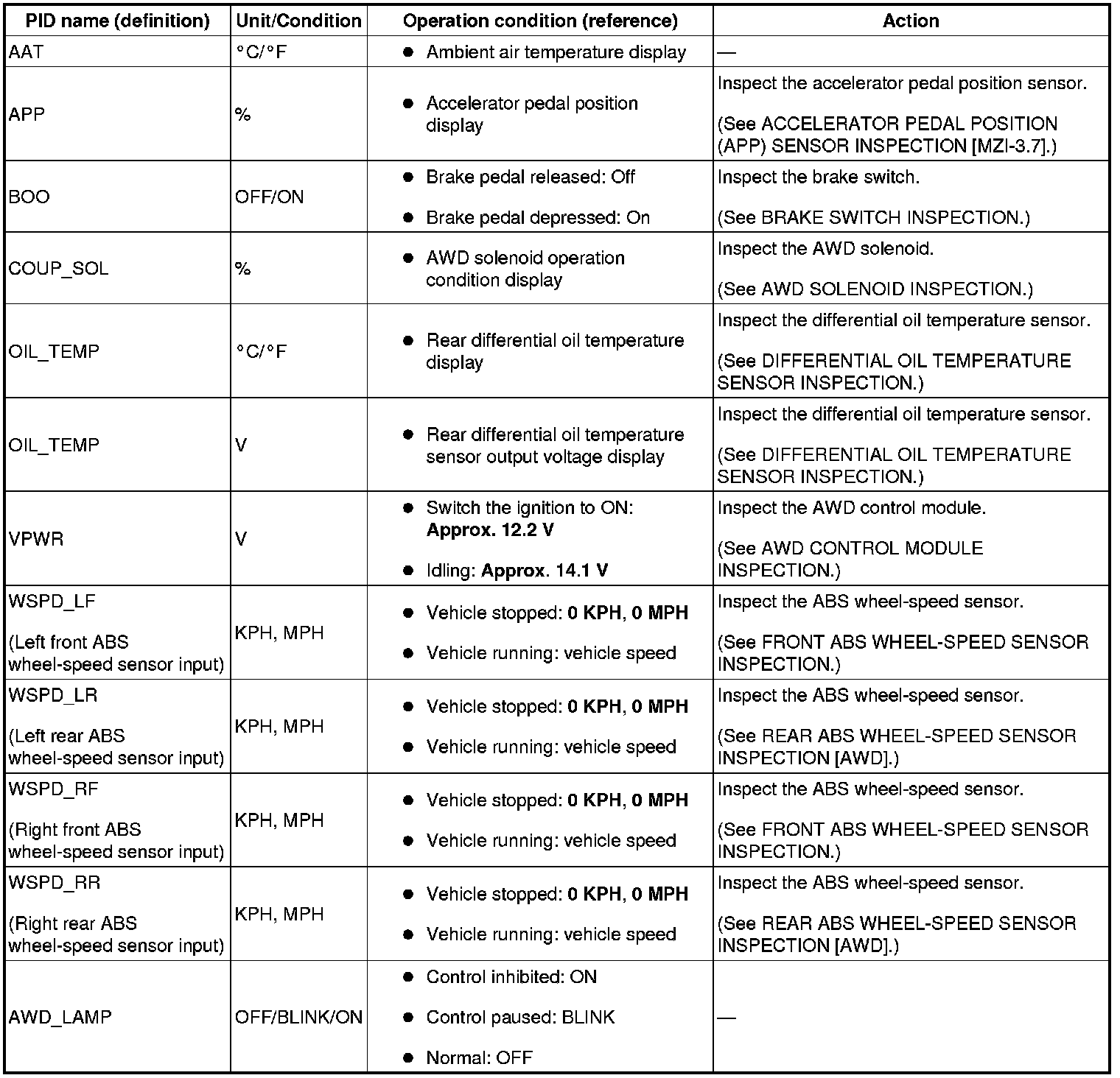 PID/DATA Monitor Table