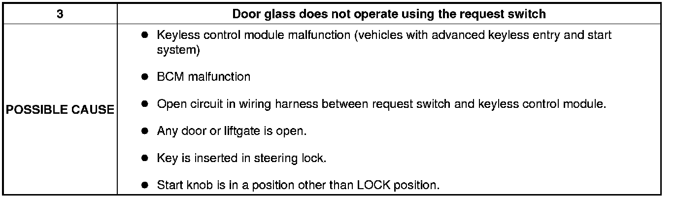No. 3 Door Glass Does Not Operate Using The Request Switch