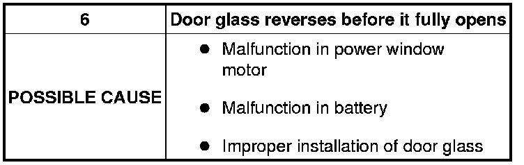 No.6 DOOR GLASS REVERSES BEFORE IT FULLY OPENS [POWER WINDOW SYSTEM (EXTERIOR OPEN FUNCTION)]