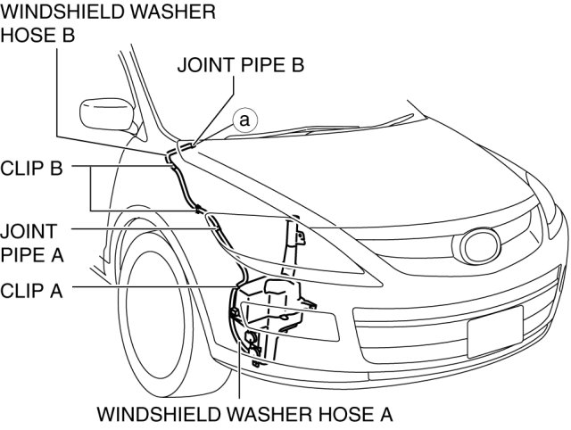 7. Disconnect joint pipe A and B and remove windshield washer hose B.