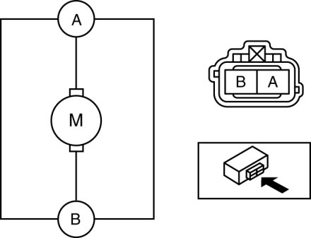 4. Connect battery positive voltage to windshield washer motor terminal A and terminal B to ground.