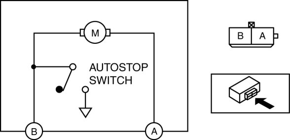 4. Connect battery positive voltage to the rear wiper motor terminal A, and ground the rear wiper motor terminal B.