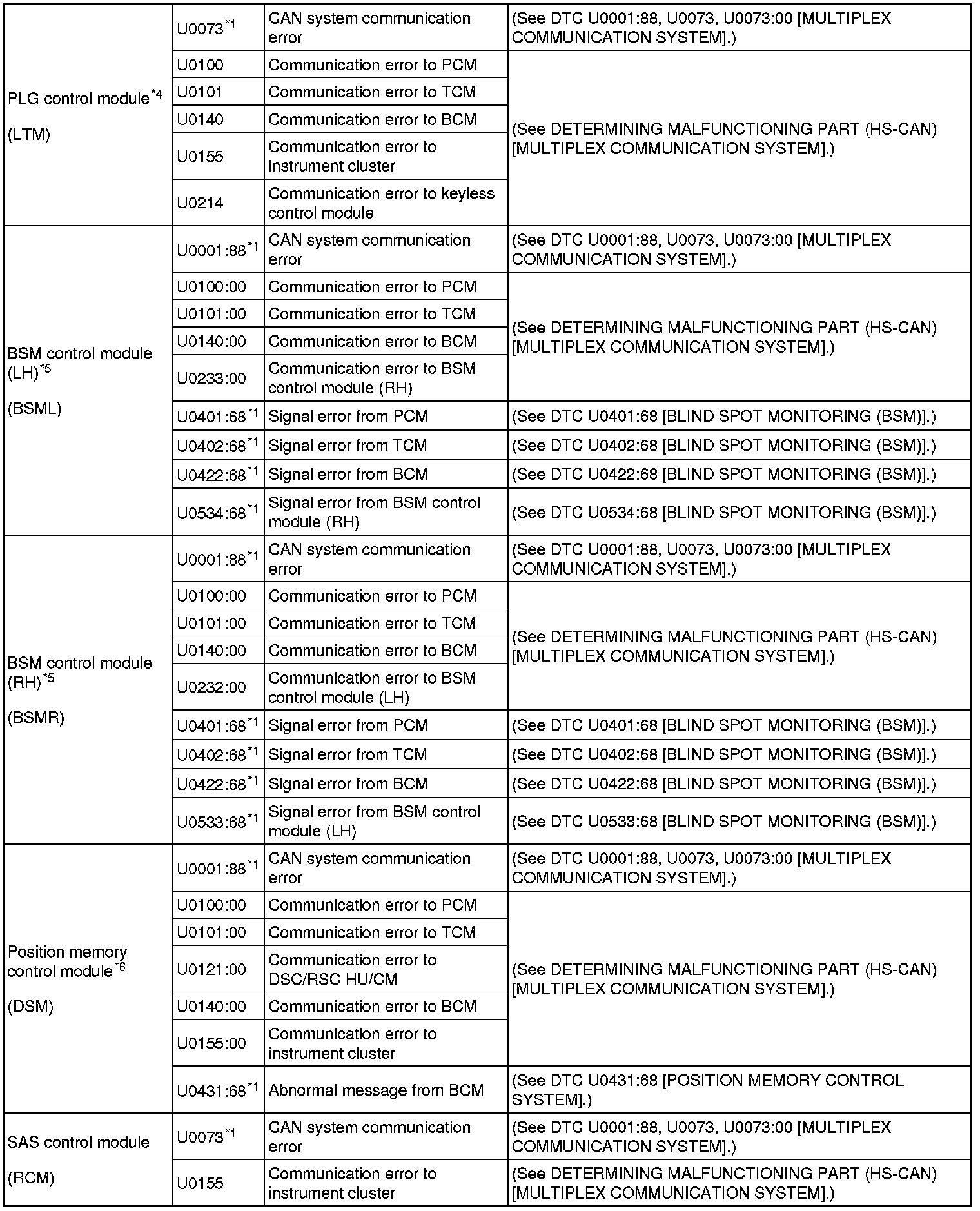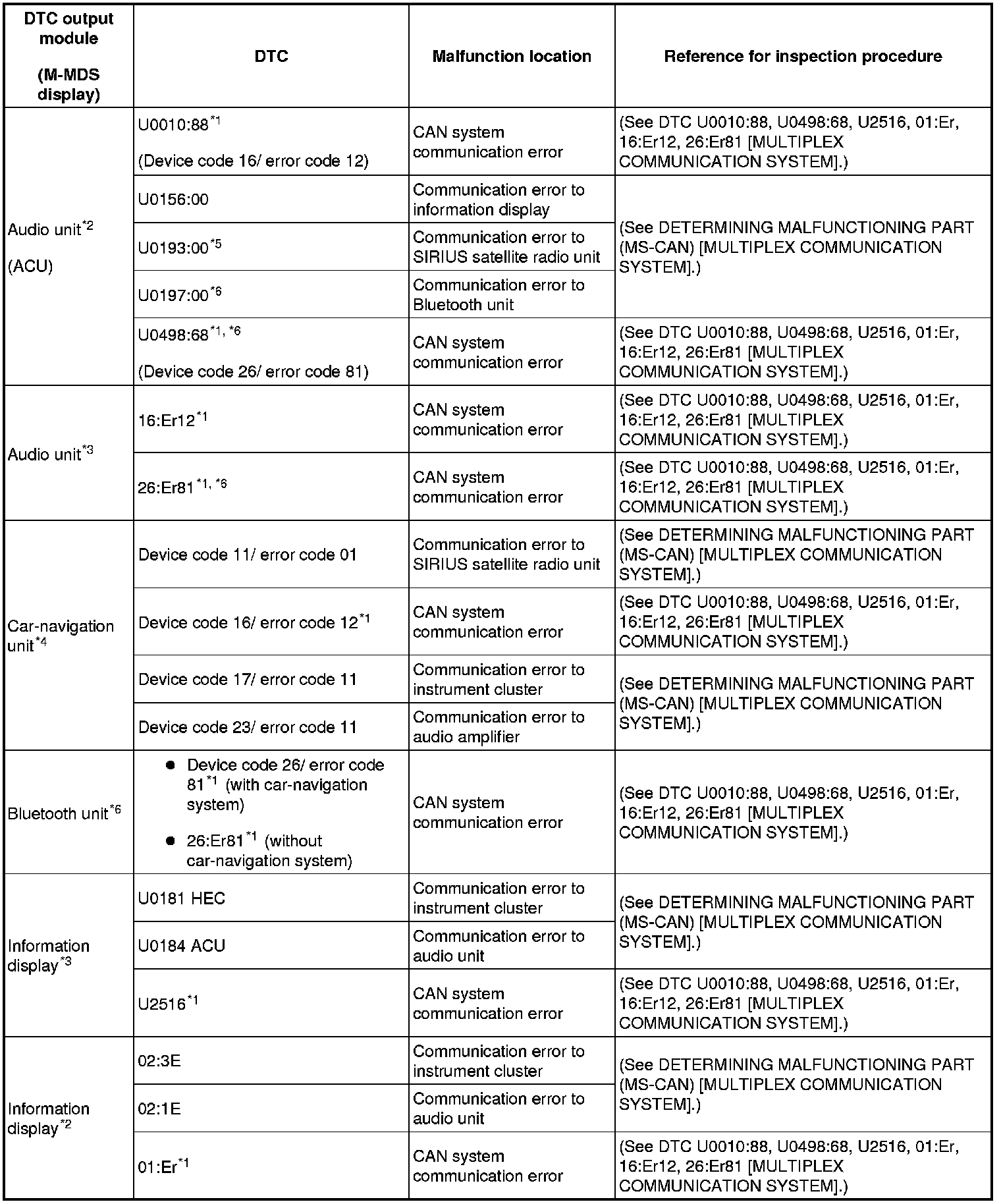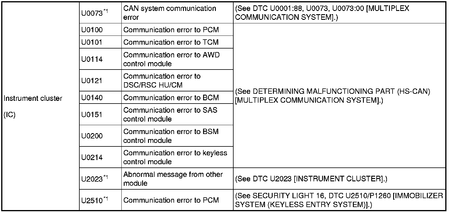 DTC TABLE [MULTIPLEX COMMUNICATION SYSTEM]