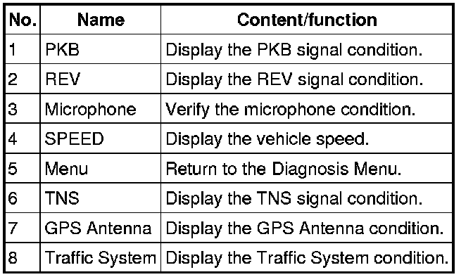 2. Launch the diagnostic mode. Starting Procedure For Diagnostic Mode - Navigation System