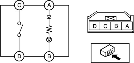 2. Apply battery voltage to PLG rear switch terminal A, and connect terminal B to ground.