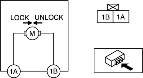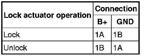 1. Apply battery positive voltage and connect ground to the corresponding front door lock actuator terminals, and inspect the front door lock actuator operation.