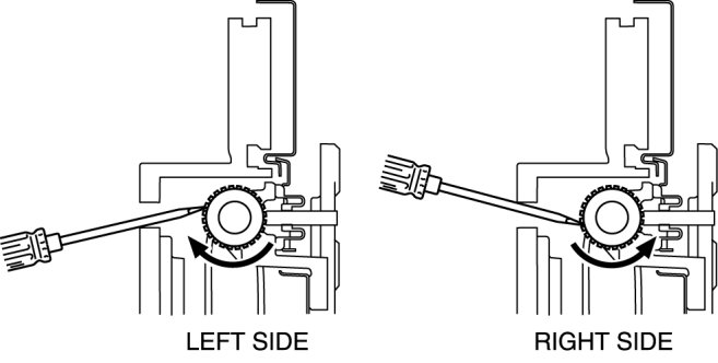- Shoe clearance can be adjusted to 0.15 mm {0.006 in} by returning the adjuster 15 notches.