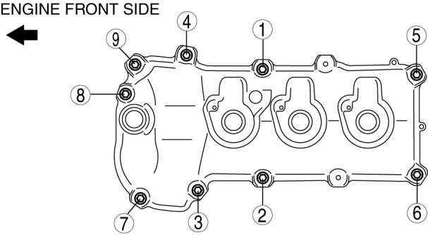 b. Tighten the engine front cover bolts in the order in 2 steps in the order shown in the figure.