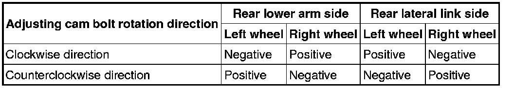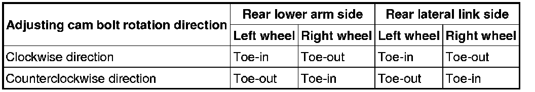 2. Rotate the adjusting cam bolt in either direction to adjust the camber and total toe-in.