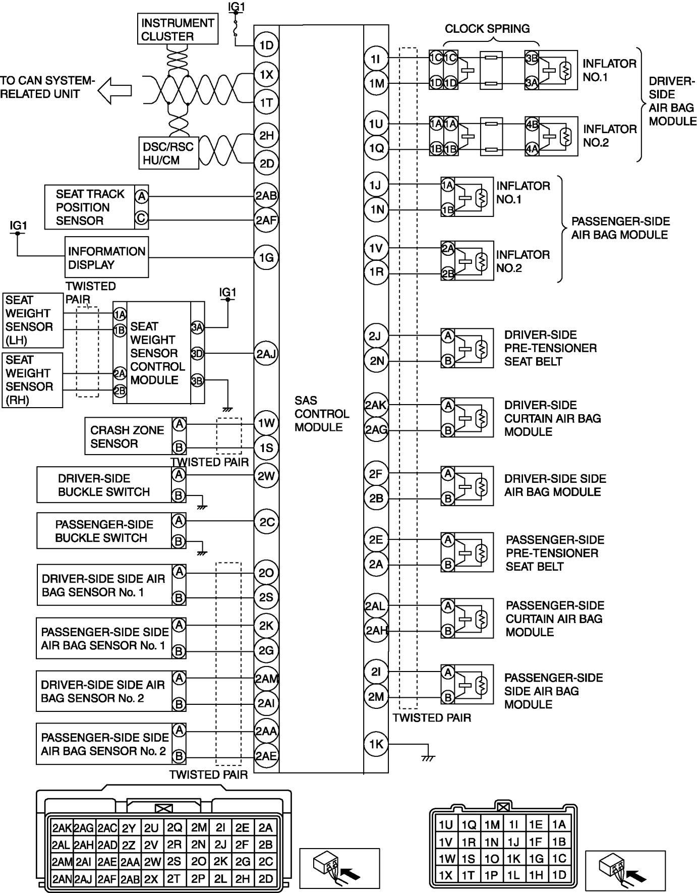 AIR BAG SYSTEM WIRING DIAGRAM (ON-BOARD DIAGNOSTIC) [TWO-STEP DEPLOYMENT CONTROL SYSTEM]