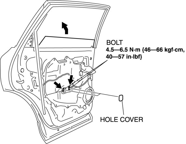 5. Remove the rear door trim. Rear Door Trim Removal/Installation