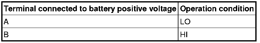 5. Connect battery positive voltage to windshield wiper motor terminal A or B, and ground to terminal D, then verify that the windshield wipers operate as shown in the table.