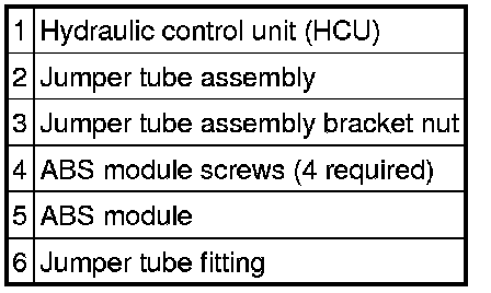 NOTE:Do not swap ABS modules between vehicles, the ABS module and the hydraulic control unit (HCU) are calibrated as an assembly.