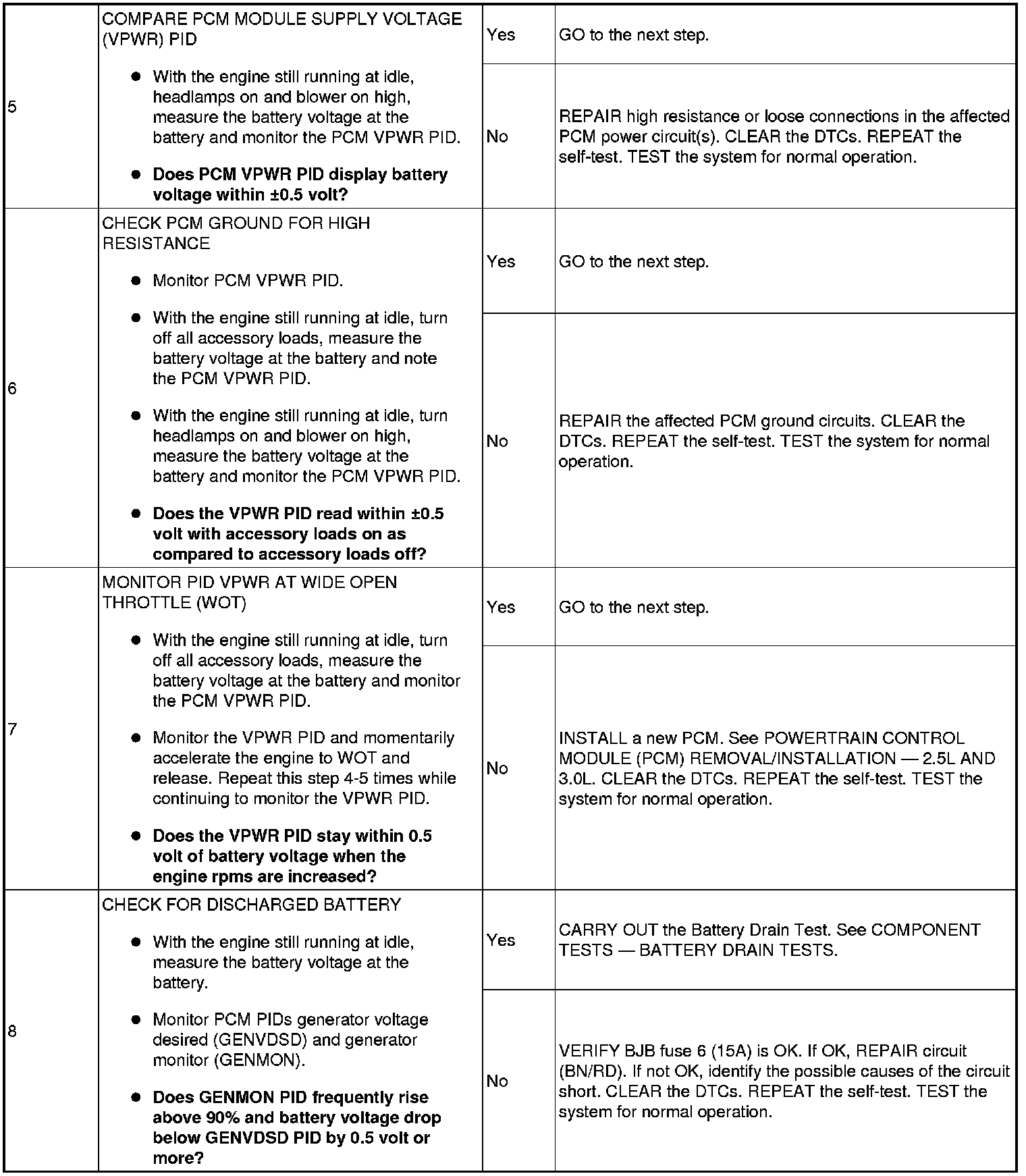 NOTE:Make sure battery voltage is greater than 12.2 volts prior to carrying out this pinpoint test.