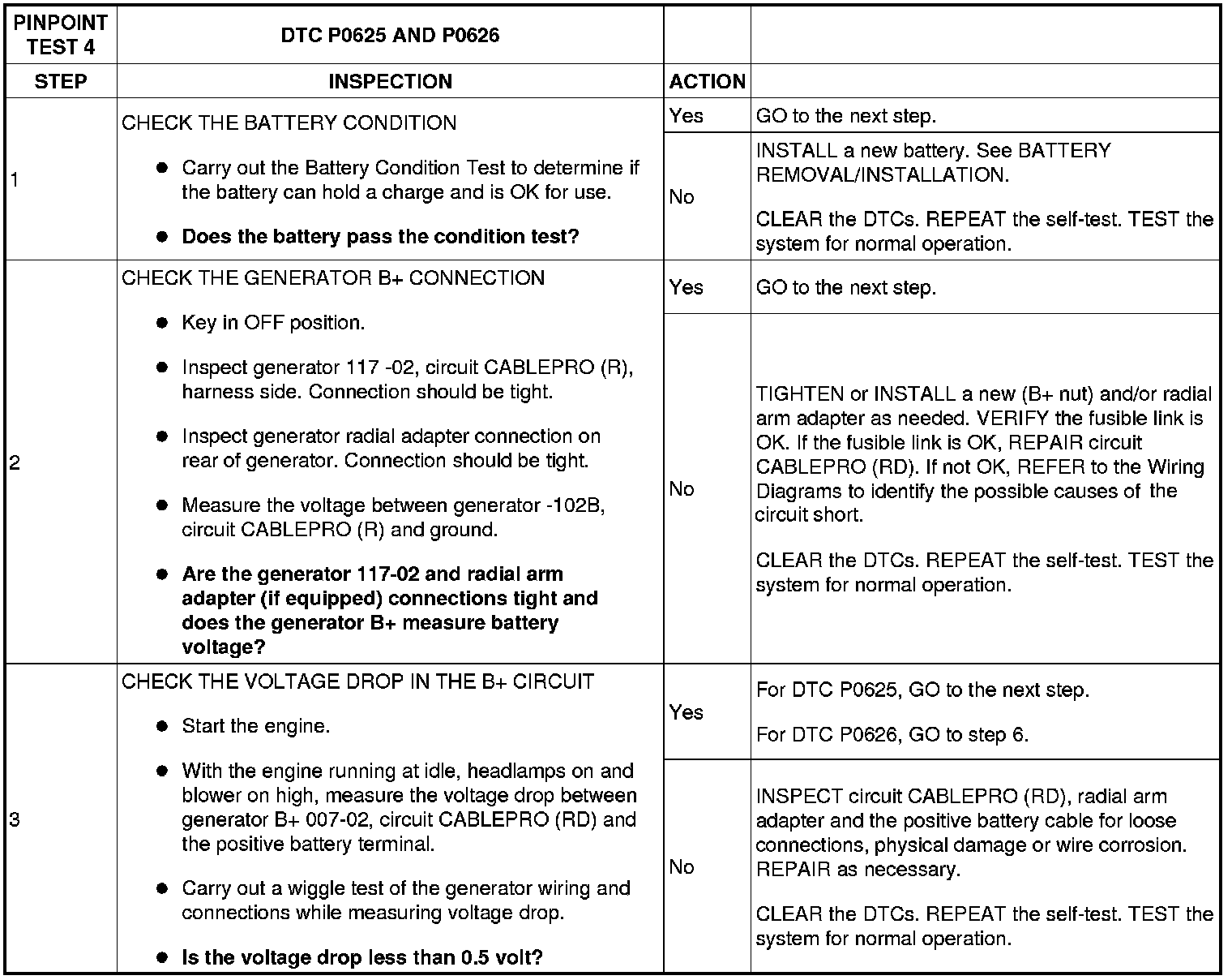 PINPOINT TEST 4: DTCs P0625 AND P0626