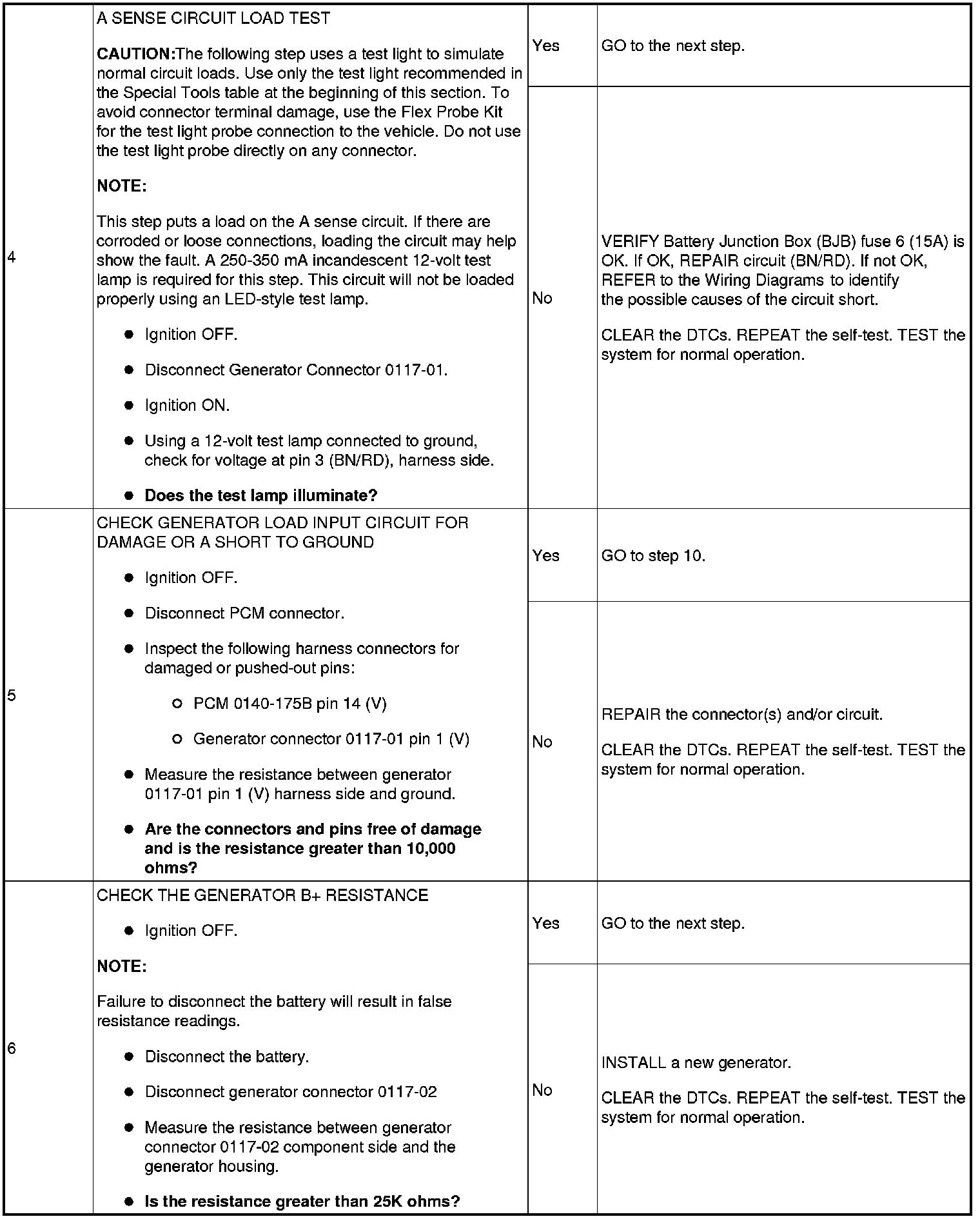 NOTE:Make sure battery voltage is greater than 12.2 volts prior to and during this pinpoint test.