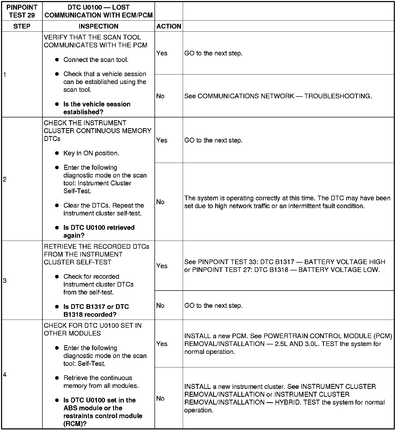 PINPOINT TEST 29: DTC U0100 - LOST COMMUNICATION WITH ECM/PCM