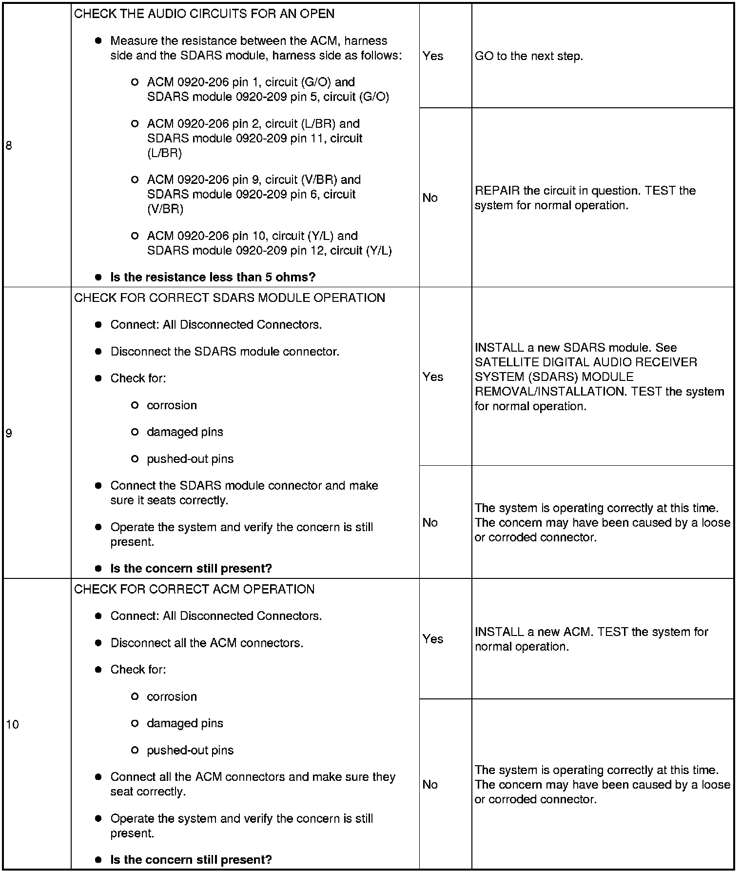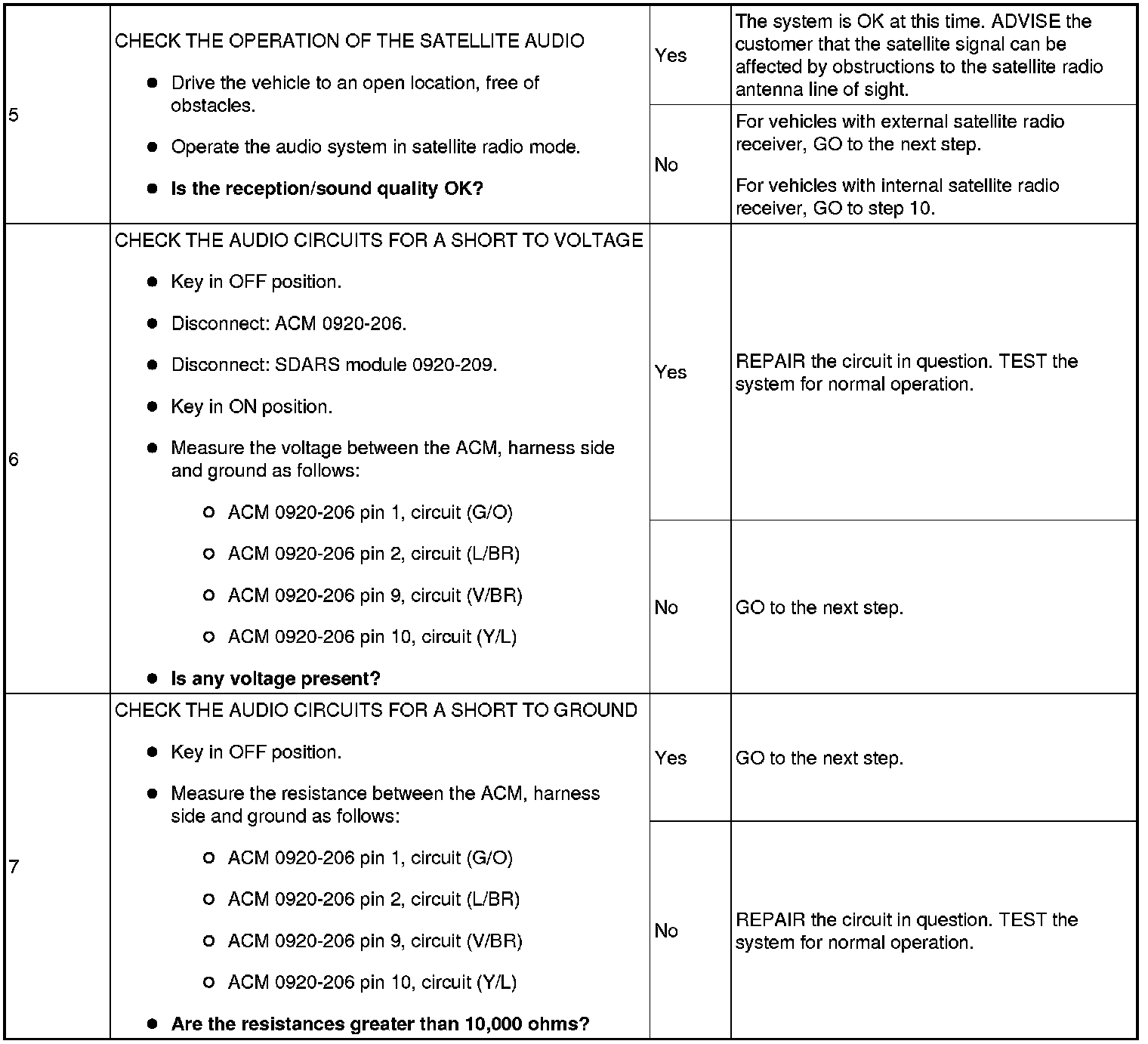 Digital signals are received by the satellite radio antenna and sent to the satellite digital audio receiver system (SDARS) module, which then converts the signals and provides audio signals to the audio control module (ACM).