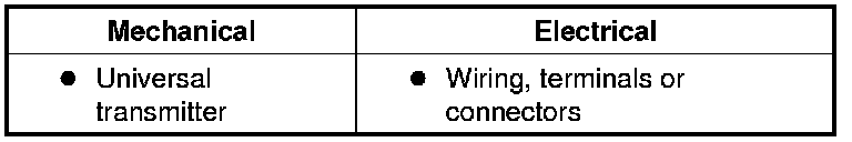 5. If the cause is not visually evident, verify the symptom and - Symptom Troubleshooting Chart - Universal Transmitter.