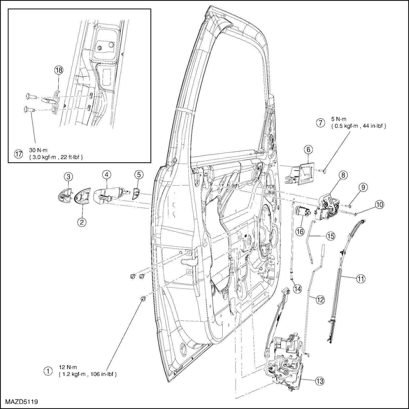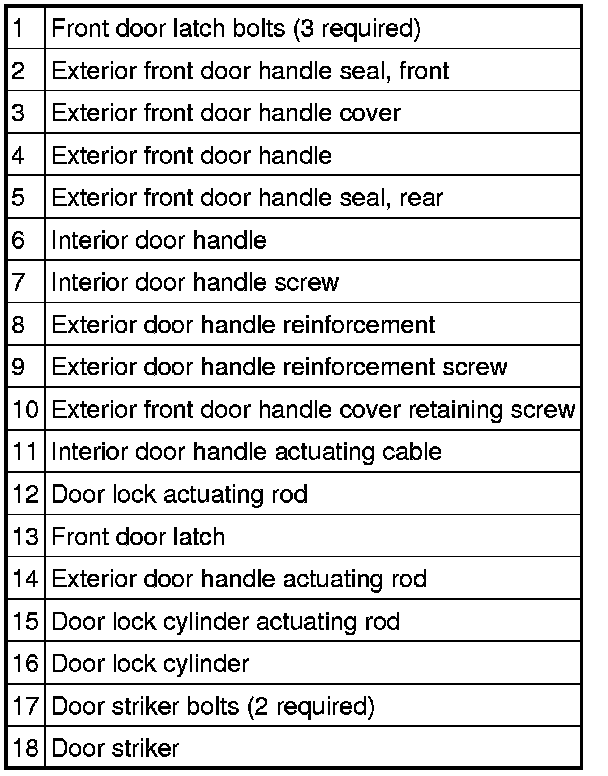 FRONT DOOR HANDLES, LOCKS AND LATCHES - EXPLODED VIEW