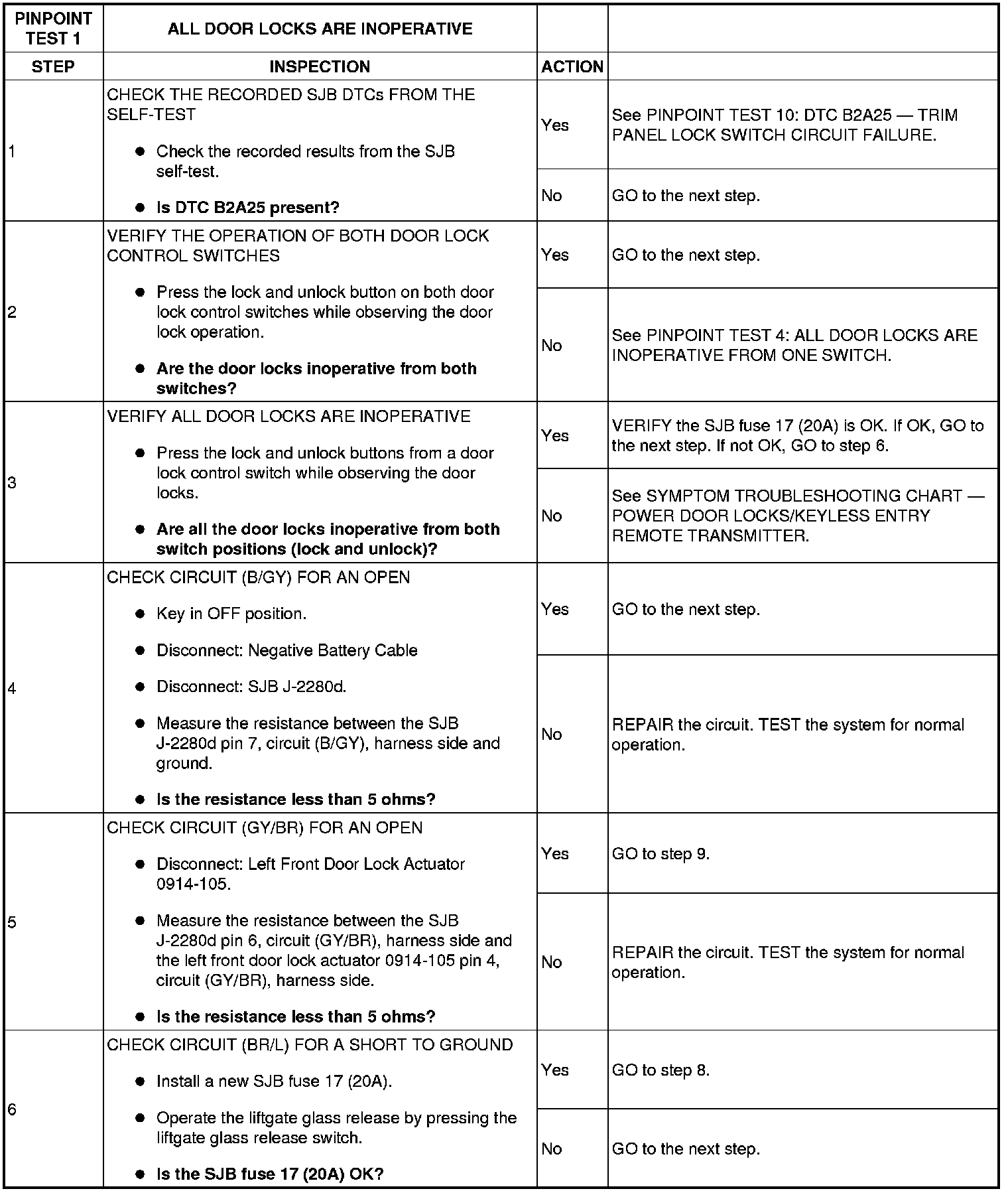 Pinpoint Test 1: All Door Locks Are Inoperative