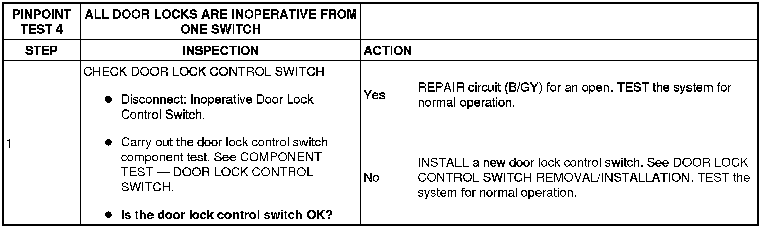 Pinpoint Test 4: All Door Locks Are Inoperative From One Switch