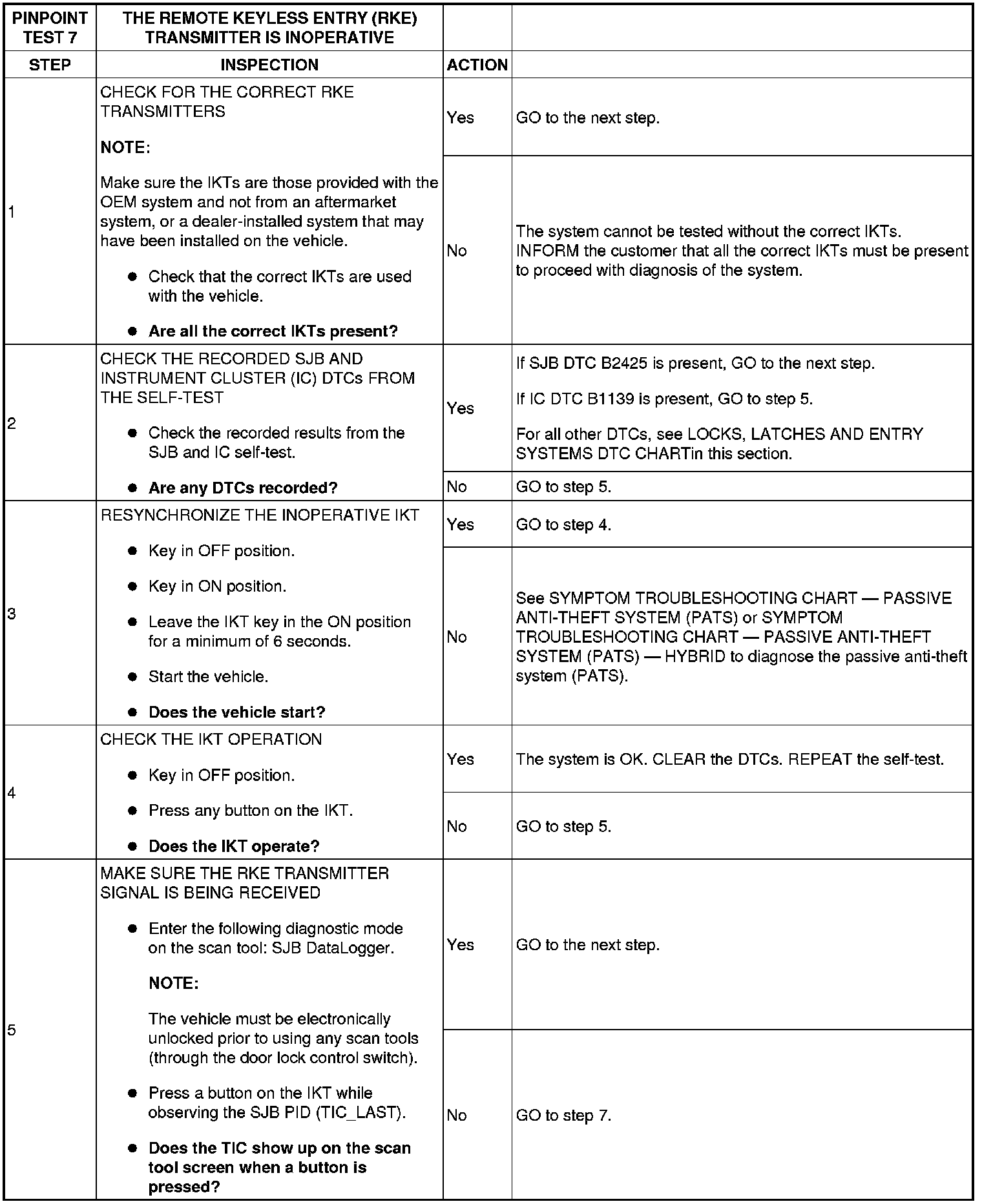 PINPOINT TEST 7: THE REMOTE KEYLESS ENTRY (RKE) TRANSMITTER IS INOPERATIVE